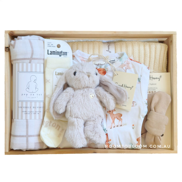 Each hamper is gorgeously gift-wrapped in a reusable wood box and delivered with a signature Room to Bloom gift card.